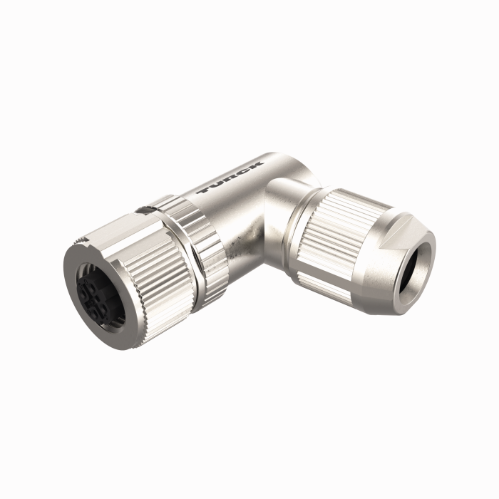 Conector hembra, M12 × 1, Acodado, codificación D