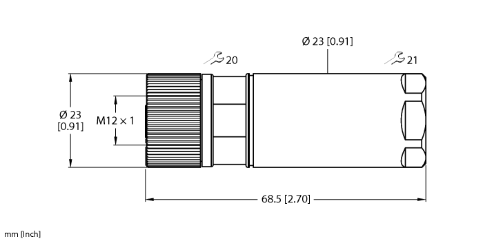 Conector hembra, M12 × 1, Recto, Codificación T