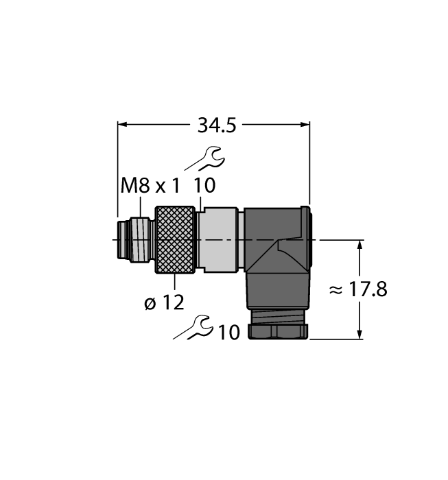 Macho, M8 × 1, Acodado